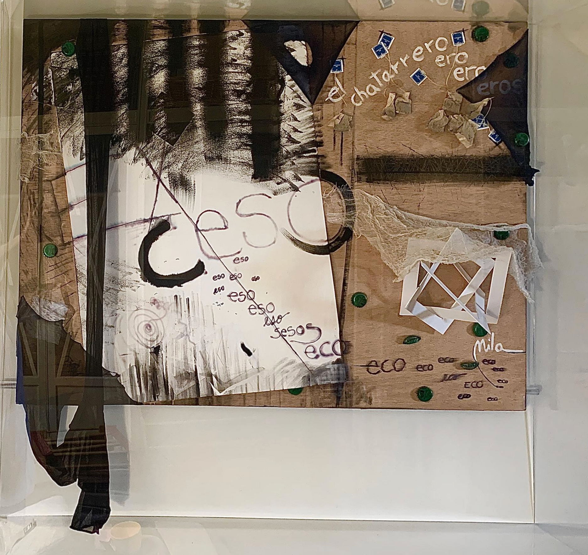 Técnica mixta: papel, tinta, medias de mujer, chapas de cerveza, bolsas de té usadas, gasa y cartulina