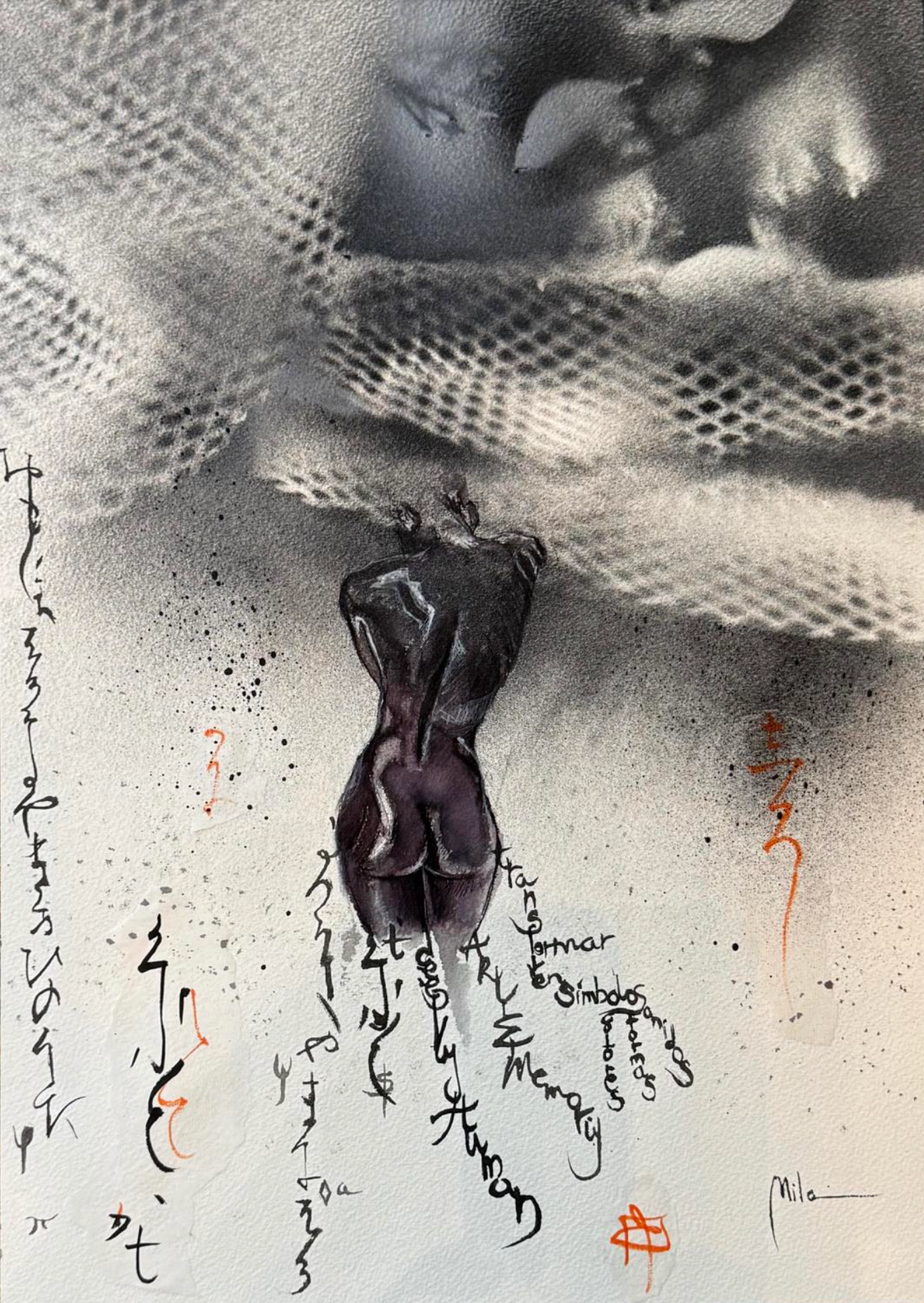 Técnica mixta: Tintas, estampación spray, papel de seda sobre papel Arches