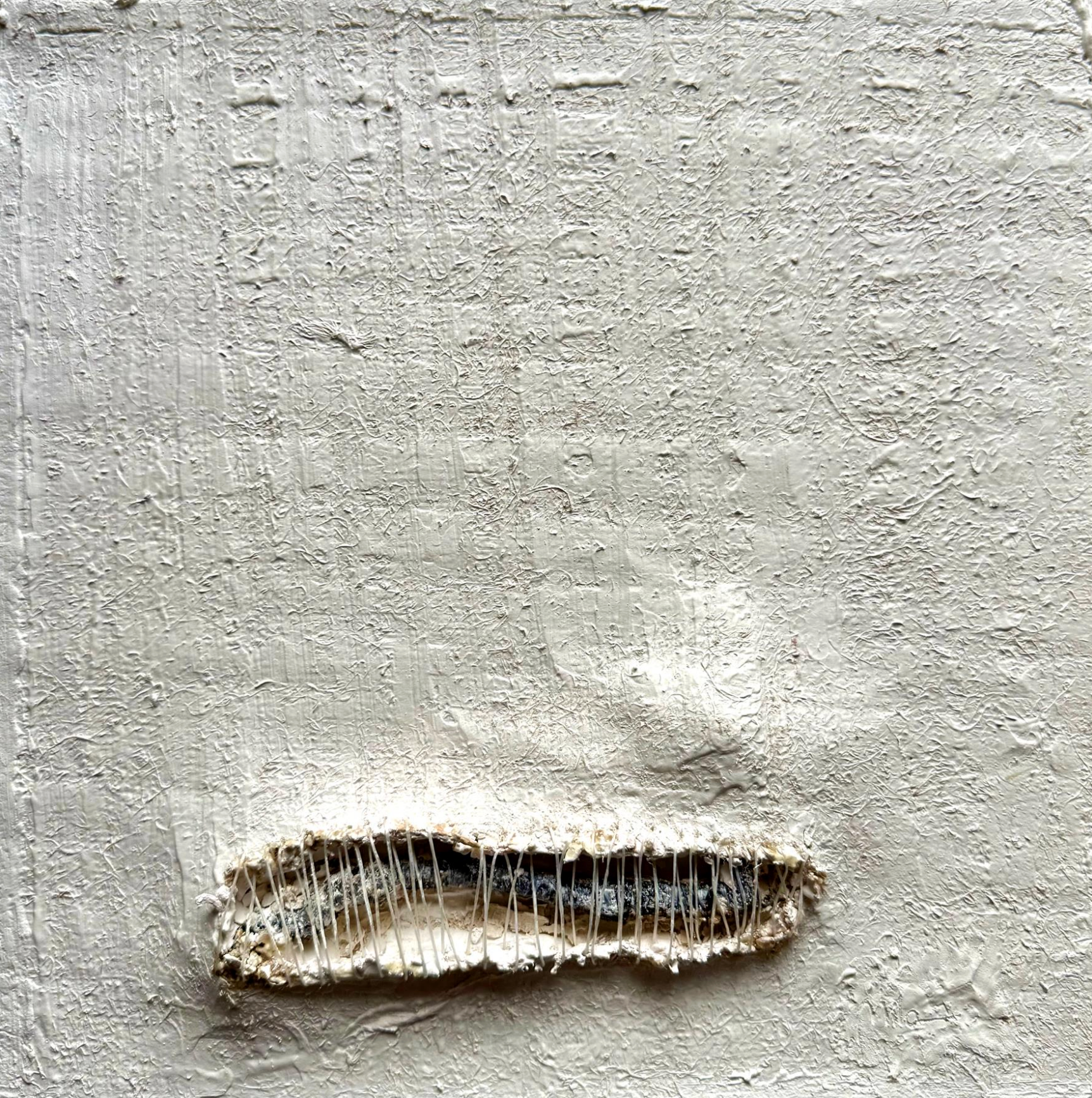 Madera, arpillera, escayola, rama e hilo.
